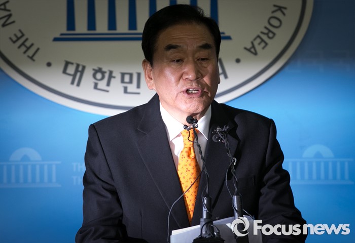 (서울=포커스뉴스) 새누리당을 탈당한 이재오 의원이 24일 오후 서울 여의도 국회 정론관에서 20대 총선 무소속 출마 기자회견을 하고 있다.