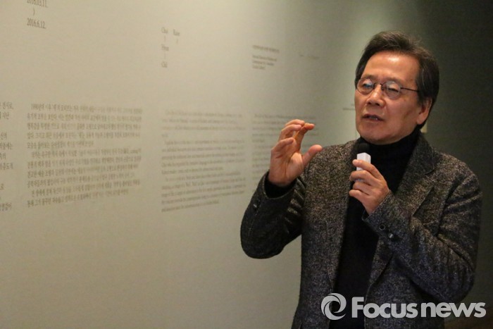 조명 테이블에 자리한 최근작 16점은 '우리 사회가 믿음과 희망, 그리고 따뜻한 정이 넘치는 사람들이 사는 진화된 사회'를 갈망했던 작가의 생각과 반성을 담아 담담히 이야기하고 있다.