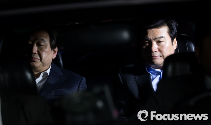 (부산=포커스뉴스) 당 공천관리위원회의 공천안에 반발해 최고위원회의 소집을 거부한 김무성(왼쪽) 새누리당 대표와 설득에 나선 원유철 원내대표가 24일 오후 부산 영도구 김 대표 사무실에서 만난 뒤 자갈치시장으로 향하고 있다.
