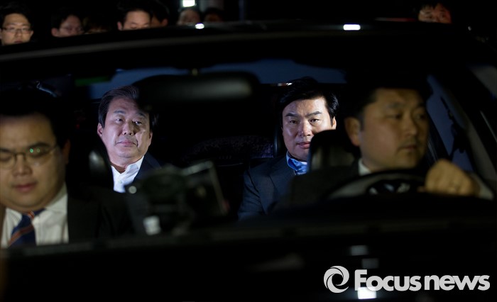 (부산=포커스뉴스) 당 공천관리위원회의 공천안에 반발해 최고위원회의 소집을 거부한 김무성(왼쪽) 새누리당 대표와 설득에 나선 원유철 원내대표가 24일 오후 부산 영도구 김 대표 사무실에서 만난 뒤 자갈치시장으로 향하고 있다.