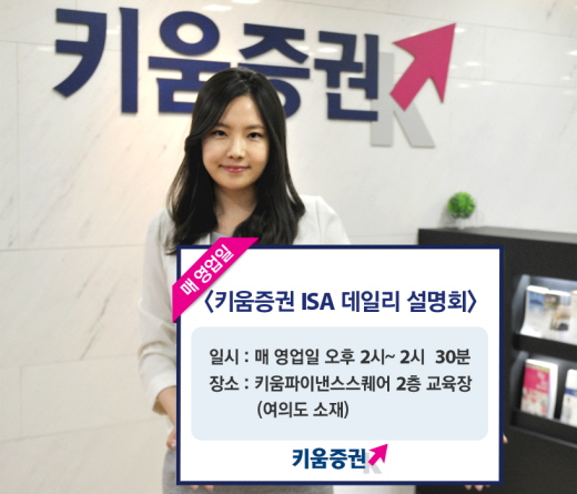 (서울=포커스뉴스) 키움증권은 오는 3월 28일부터 4월 29일까지 매일(주말, 공휴일 제외) ISA(만능통장) 설명회를 진행한다고 25일 밝혔다.