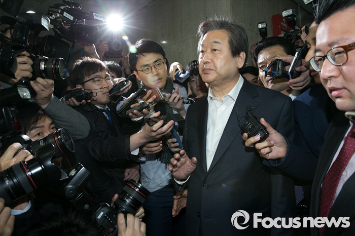 (서울=포커스뉴스) 김무성 새누리당 대표가 당 공천관리위원회의 결정에 반발해 유승민 의원 등 지역구 6곳에 대해 무공천을 선언해 갈등이 이어지고 있는 25일 오전 서울 여의도 당사로 김 대표가 취재진 질문을 받으며 들어서고 있다.