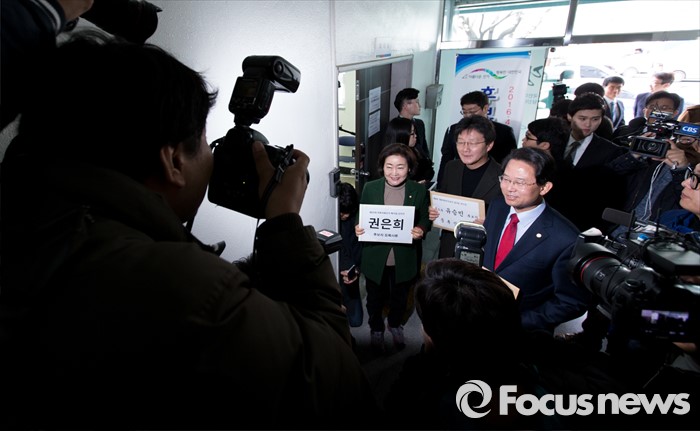 (대구=포커스뉴스) 25일 오전 대구 동구선거관리위원회에서 류성걸(대구 동갑), 유승민(대구 동을), 권은희(대구 북갑) 의원이 후보자 등록에 앞서 기념촬영을 하고 있다.