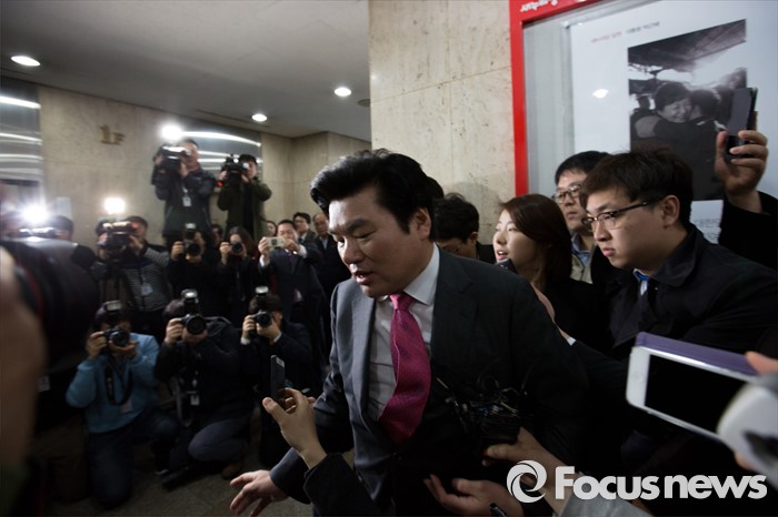 (서울=포커스뉴스) 이른바 진박 후보 공천장에 도장 못찍는다며 김무성 새누리당 대표의 '옥새투쟁'이 이어지고 있는 25일 오전 서울 영등포구 새누리당사 앞에서 원유철 새누리당 원내대표가 최고위원회의에 참석하기 위해 이동 하고 있다.