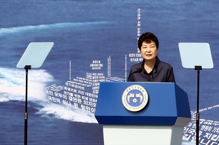 (서울=포커스뉴스) 박근혜 대통령이 25일 오전 국립대전현충원에서 열린 1회 서해수호의 날 기념식에 참석해 기념사를 하고 있다. <사진제공=국가보훈처>