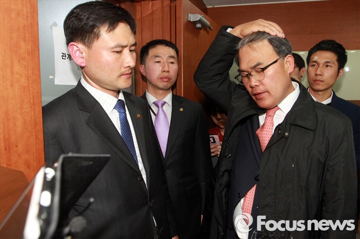 (서울=포커스뉴스) 이재만(오른쪽) 새누리당 대구 동을 예비후보가 25일 오후 서울 여의도 당사 회의장 입구에서 최고위원회의 무공천 결정에 대해 항의하며 면담을 요청하고 있다. 이날 새누리당 최고위는 정종섭(대구 동갑), 추경호(대구 달성), 이인선(대구 수성을) 후보의 공천을 확정했으며, 유영하(서울 송파을), 이재만(대구 동을), 유재길(서울 은평을) 후보는 공천 의결 보류를 확정했다.