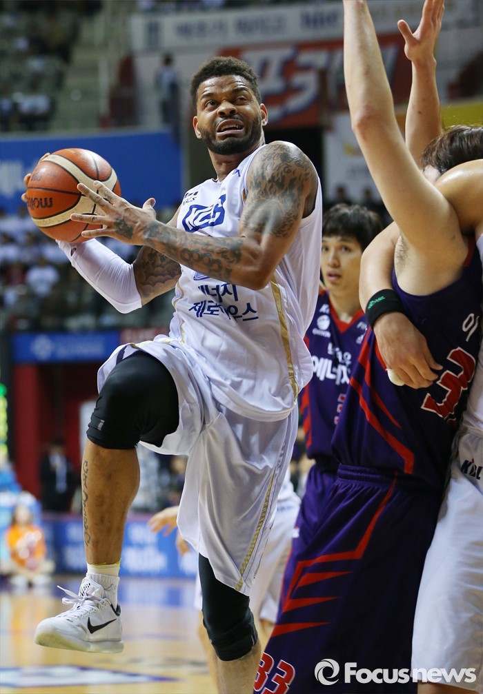 (고양=포커스뉴스) 25일 고양체육관에서 열린 2015-2016 프로농구 챔피언결정전 4차전 오리온-KCC경기에서 KCC 에밋이 오리온 이승현의 마크를 피해 레이업슛을 시도하고 있다.