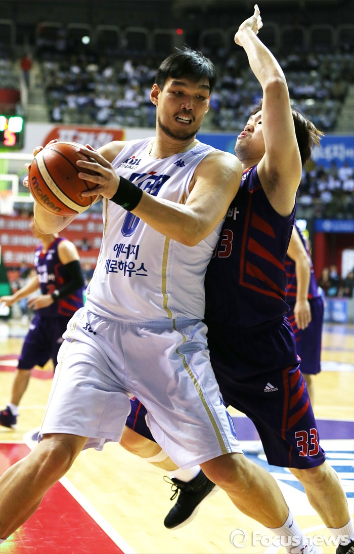 (고양=포커스뉴스) 25일 고양체육관에서 열린 2015-2016 프로농구 챔피언결정전 4차전 오리온-KCC경기에서 KCC 하승진을 오리온 이승현이 몸으로 막고 있다.