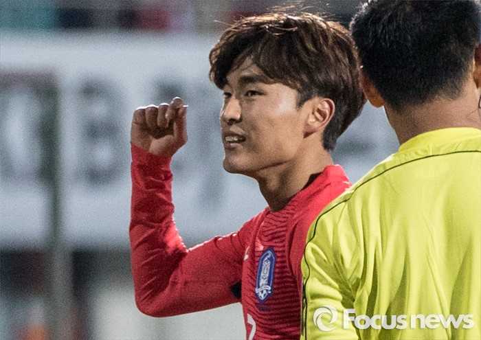 (이천=포커스뉴스) 25일 오후 경기 이천종합운동장에서 열린 KEB하나은행 초청 올림픽대표 대한민국과 알제리의 친선경기에서 전반전 한국 문창진이 두번째 골을 성공하자 기뻐하고 있다.