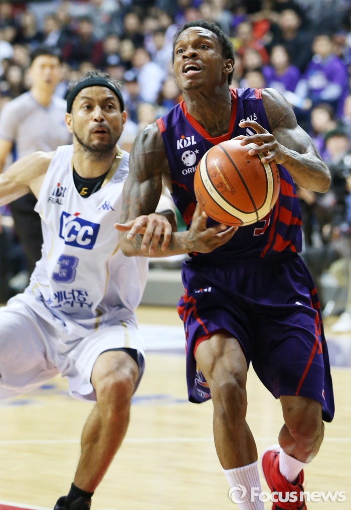 (고양=포커스뉴스) 25일 고양체육관에서 열린 2015-2016 프로농구 챔피언결정전 4차전 오리온-KCC경기에서 KCC 전태풍이 돌파하는 오리온 조 잭슨의 팔을 잡고 있다.