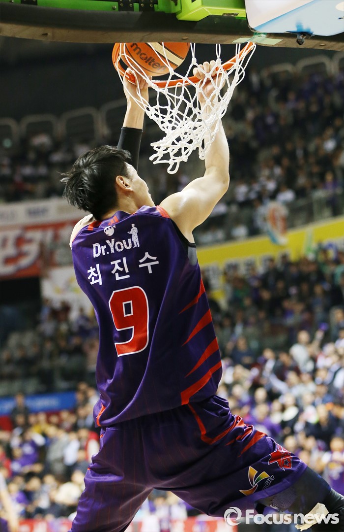 (고양=포커스뉴스) 25일 고양체육관에서 열린 2015-2016 프로농구 챔피언결정전 4차전 오리온-KCC경기에서 오리온 최진수가 백덩크를 성공시키고 있다.