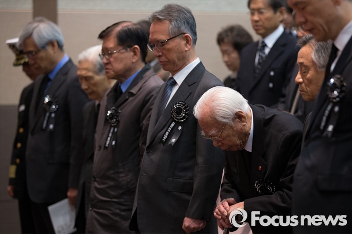 (서울=포커스뉴스) 26일 오전 서울 중구 안중근의사기념관에서 열린 '안중근의사 순국 106주기 추모식'에서 참석자들이 묵념을 하고 있다.