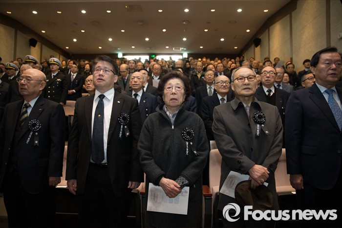 (서울=포커스뉴스) 26일 오전 서울 중구 안중근의사기념관에서 열린 '안중근의사 순국 106주기 추모식'에서 참석자들이 애국가제창을 하고 있다.