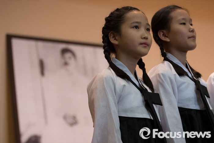 (서울=포커스뉴스) 26일 오전 서울 중구 안중근의사기념관에서 열린 '안중근의사 순국 106주기 추모식'에서 역사어린이합창단이 추념가를 부르고 있다.
