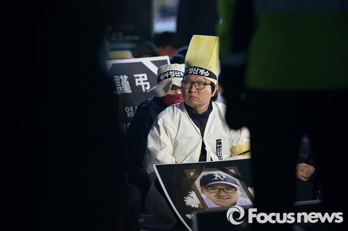 (서울=포커스뉴스) 26일 오후 서울 중구 시청광장에서 유성기업 지회조합원들이 4일째 노숙농성을 이어가고 있다. 유성기업 공대위는 故 한광호 조합원 죽음의 원인이 된 노조파괴를 중단하고 유성기업과 현대기아차의 처벌을 요구하고 있다.