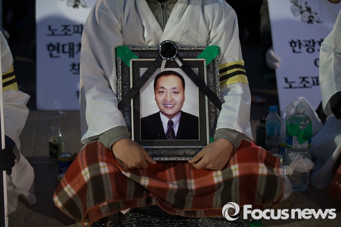 (서울=포커스뉴스) 26일 오후 서울 중구 시청광장에서 유성기업 지회조합원들이 4일째 노숙농성을 이어가고 있다. 유성기업 공대위는 故 한광호 조합원 죽음의 원인이 된 노조파괴를 중단하고 유성기업과 현대기아차의 처벌을 요구하고 있다.