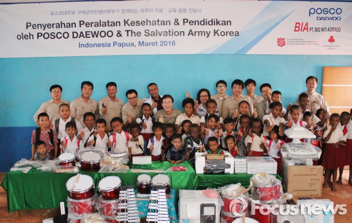 (서울=포커스뉴스) 포스코대우는 26일 구세군 자선냄비본부와 함께 인도네시아 파푸아 주에서 현지 보건소와 초등학교의 운영여건 개선을 위한 의료 및 교육용품 지원사업을 실시했다고 27일 밝혔다.