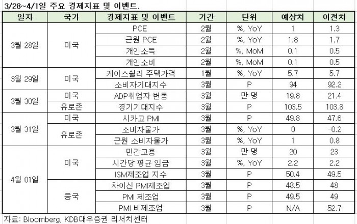 우선 다음달 1일에는 미국 3월 ISM 제조업지수가 발표된다. 시장 예상치는 50.4로 전월 대비 소폭 개선될 것으로 관측된다. 뉴욕, 필라델피아, 리치몬드 등 지역 제조업 심리지표는 모두 시장 예상치를 상회했다.