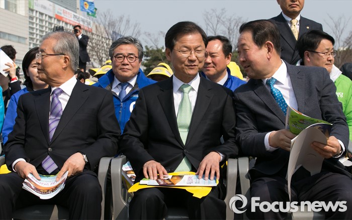 (광주=포커스뉴스) 천정배(가운데) 국민의당 공동대표와 박주선(오른쪽) 최고위원이 27일 오후 광주광역시청 문화광장에서 열린 2016 부활절 연합예배에 참석해 대화하고 있다. 왼쪽은 김종인 더불어민주당 비대위 대표.
