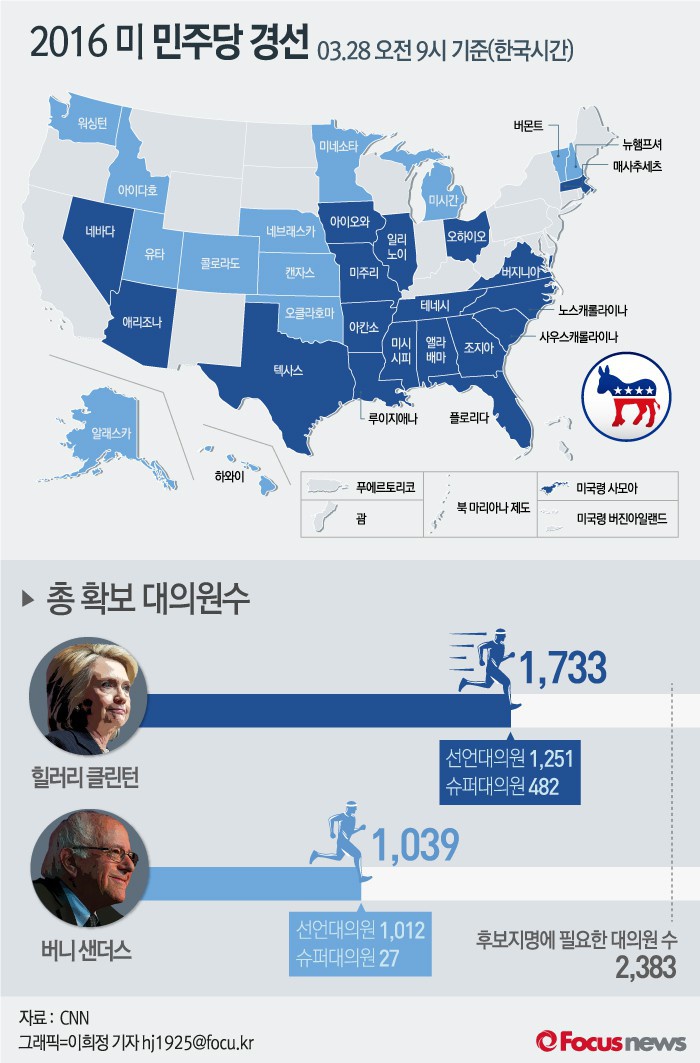 (서울=포커스뉴스) 26일(이하 현지시간) 열린 미국 민주당 대선 후보 경선에(워싱턴, 알래스카, 하와이)서 버니 샌더스 상원의원이 세 곳 모두 압도적인 차이로 승리를 거뒀다.