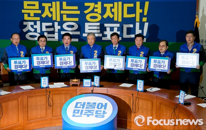 | △ '문제는 경제, 정답은 투표' 구호 외치는 더민주 |