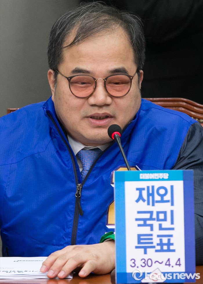 (서울=포커스뉴스) 최동익 더불어민주당 선대위 부위원장이 27일 오전 서울 여의도 국회에서 열린 중앙선거대책위원장단회의에 참석해 발언하고 있다.