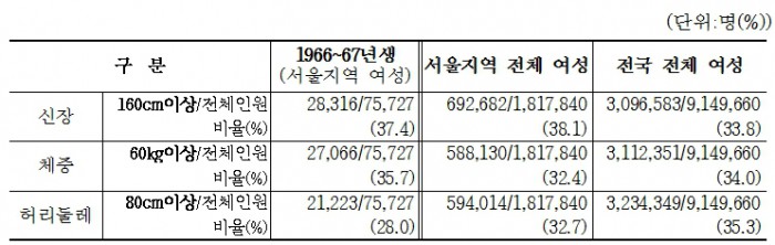 서울 여성 10명 중 3.8명, 키 160㎝ 이상
