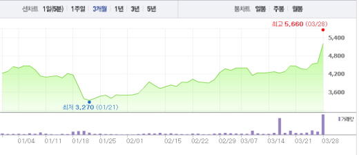 진양화학의 주가도 상당히 오른 상태다. 플라스틱 합성피혁 제조업체인 진양화학은 전일 대비 0.56%(40원) 상승한 7190원에 거래 중이다. 3월 2일 3200원에 불과했던 주가는 현재 2배 이상 올랐다. 25일에는 주가가 8500원을 찍으며 52주 최고가 기록을 다시 세우기도 했다.