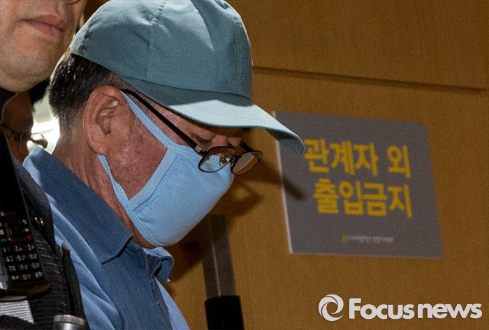 (서울=포커스뉴스) 28일 오전 서울시청 다목적홀에서 세월호 참사 특별조사위원회의 제2차 청문회가 열렸다. 이날 청문회에 증인으로 참석한 이준석 선장이 증인석으로 향하고 있다.