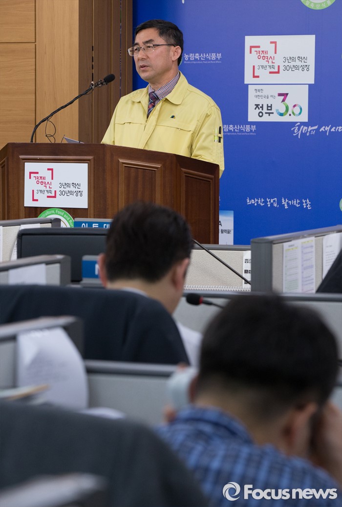 (세종=포커스뉴스) 이준원 농림축산식품부 식품산업정책실장이 28일 오전 세종시 정부세종청사 농식품부 기자실에서 고병원성 AI 및 구제역 방역대책 추진상황에 대한 브리핑을 하고 있다.