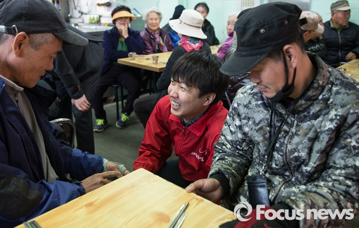 (서울=포커스뉴스) 이준석 새누리당 노원병 후보가 28일 오후 서울 노원구 당고개역 인근의 한 식당에서 선거 유세를 하고 있다.