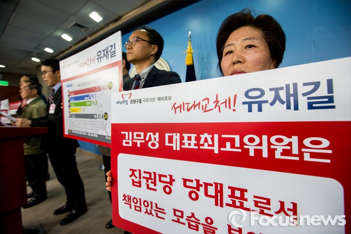 유재길 예비후보는 이날 오후 2시 30분쯤 서울 여의도 국회 정론관에서 기자회견을 열고 "무공천은 명백히 위법이며 무책임한 결정"이라고 비판한 뒤 "은평을의 선거 중지 가처분 신청을 낼 것"이라고 밝혔다.