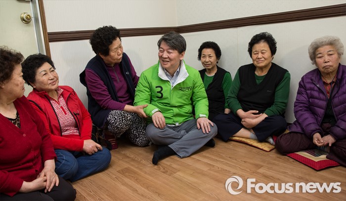 (서울=포커스뉴스) 20대 총선을 16일 앞둔 28일 오후 안철수 국민의당 서울 노원병 후보가 상계 1동 경로당을 방문해 지역 어른들과 대화하고 있다.