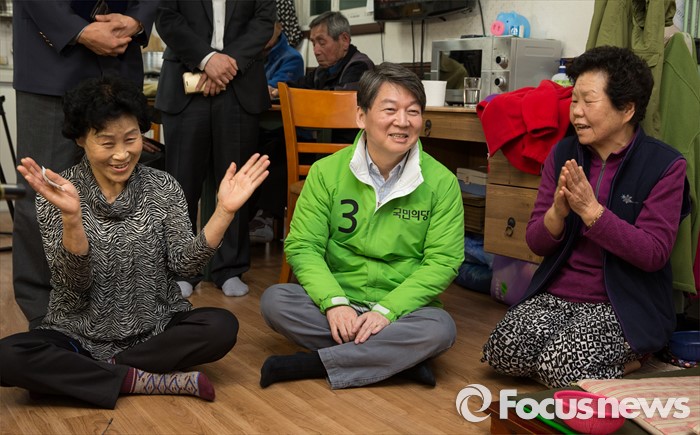 (서울=포커스뉴스) 20대 총선을 16일 앞둔 28일 오후 안철수 국민의당 서울 노원병 후보가 상계 1동 경로당을 방문하고 있다.