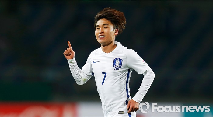 (고양=포커스뉴스) 28일 오후 경기 고양종합운동장에서 열린 올림픽축구대표팀 2차 평가전 대한민국과 알제리의 경기에서 한국 문창진이 후반전 추가골을 넣고 세리머니를 하고 있다.