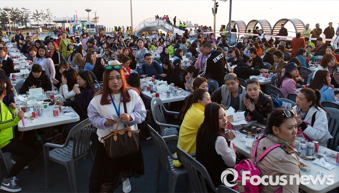 (인천=포커스뉴스) 28일 오후 인천 중구 월미 문화의 거리에서 중국 아오란 그룹 임직원 4500명이 치맥파티를 즐기고 있다.