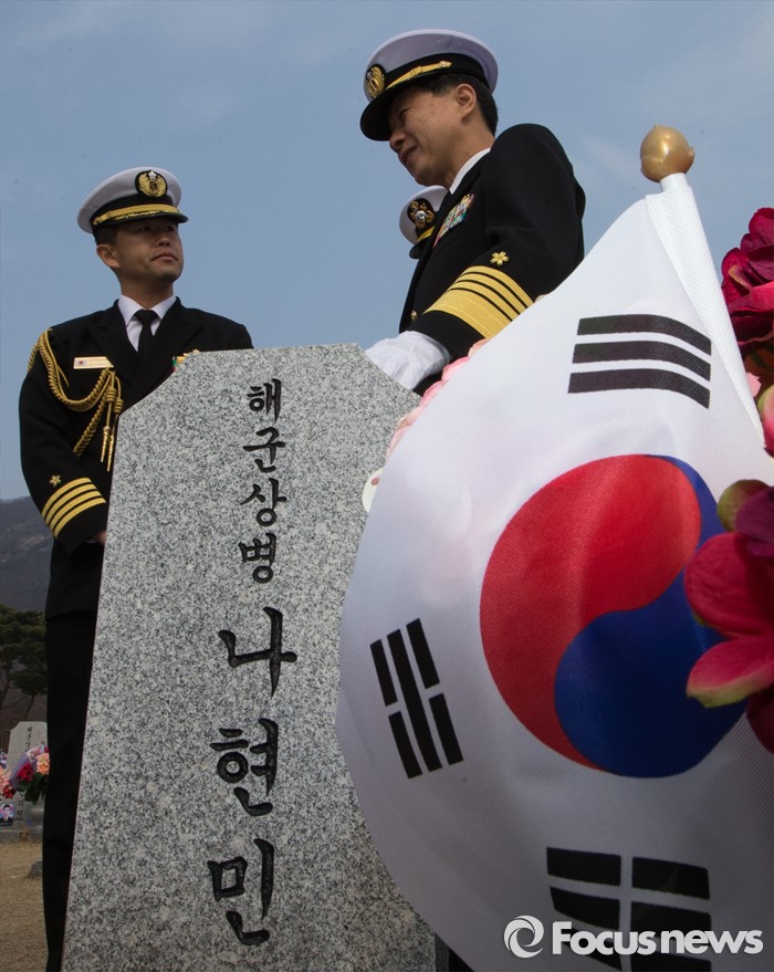 (대전=포커스뉴스) 다케이 도모히사 일본 해상막료장(해군참모총장)이 29일 오전 대전 유성구 국립대전현충원을 방문, 천안함 46용사 묘역을 둘러보고 있다.