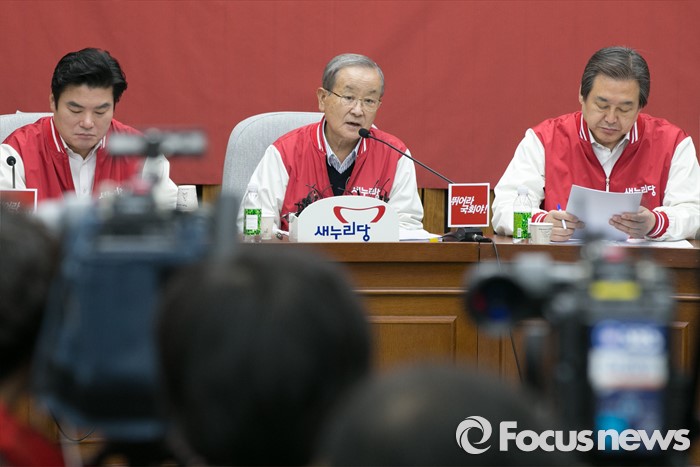 (서울=포커스뉴스) 강봉균(가운데) 새누리당 공동 선거대책위원장이 29일 오전 서울 여의도 국회에서 열린 첫 중앙선거대책위원회의에 참석해, 20대 총선 경제정책 공약을 설명하고 있다.