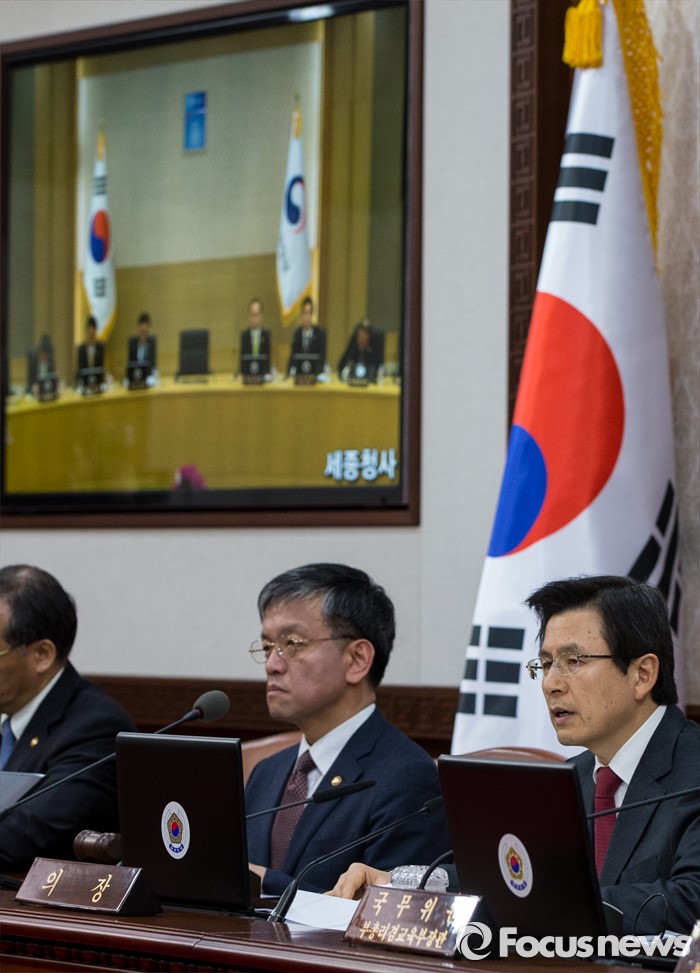(서울=포커스뉴스) 29일 오전 서울 종로구 정부서울청사에서 열린 국무회의에 참석한황교안 국무총리가 모두발언 하고 있다.