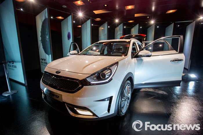 (서울=포커스뉴스) 29일 오전 서울 광진구 쉐라톤 그랜드 워커힐에서 기아차 친환경 소형 SUV '니로(NIRO)'가 공개돼고 있다.