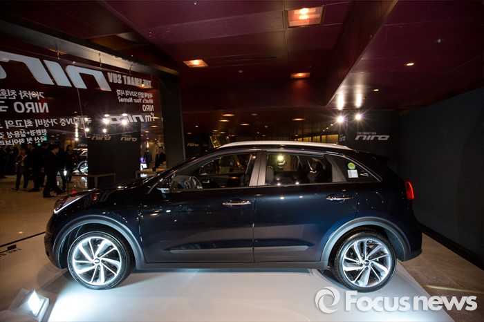 (서울=포커스뉴스) 29일 오전 서울 광진구 쉐라톤 그랜드 워커힐에서 기아차 친환경 소형 SUV '니로(NIRO)'가 공개돼고 있다.