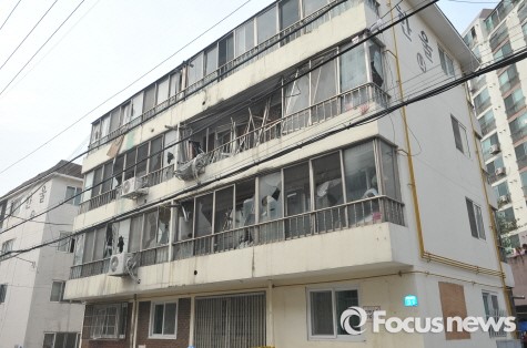 (대전=포커스뉴스) 29일 오후 대전 동구 소재 빌라에서 가스 폭발로 추정되는 사고가 발생해 앞건물의 유리창이 파손돼 있다. <사진제공=대전동부소방서>