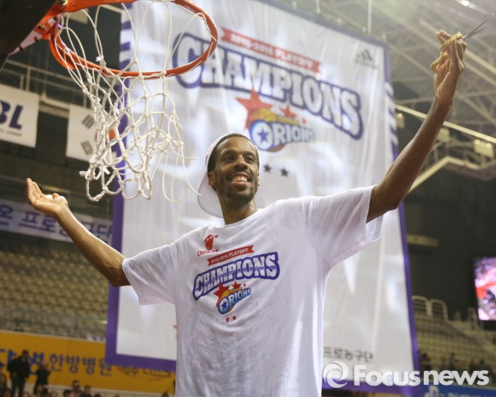(고양=포커스뉴스) 29일 고양체육관에서 열린 2015-2016 프로농구 챔피언결정전에서 KCC를 4승2패로 물리치고 우승을 차지한 오리온의 헤인즈가 골망을 자르기전에 포즈를 취하고 있다.