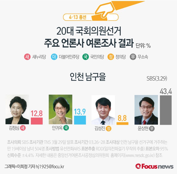 | △ [그래픽] 4.13총선 인천 남구을 여론조사결과 |