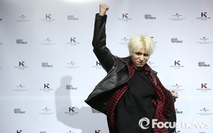 (서울=포커스뉴스) 30일 오후 서울 마포구 예스24 무브홀에서 열린 아이돌그룹 소년공화국의 세번째 미니앨범 [BR: evolution] 발표 쇼케이스에 참석한 멤버 민수가 포토타임을 갖고 있다.