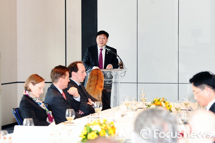 (서울=포커스뉴스) 주형환 산업통상자원부 장관이 30일 오후 서울 종로구 포시즌호텔에서 열린 주한 유럽연합(EU) 대사 및 EU 회원국 대사단과의 오찬 간담회에 참석해 한-EU 경제협력과 향후 추진 방향 등과 관련하여 의견을 교환하고 있다.
