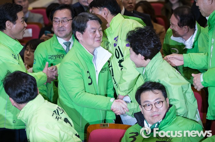 (서울=포커스뉴스) 안철수 국민의당 상임공동대표가 30일 오후 서울 여의도 국회에서 열린 총선 승리를 위한 국민의당 수도권 후보 출정식에 참석해 후보들과 인사를 나누고 있다.