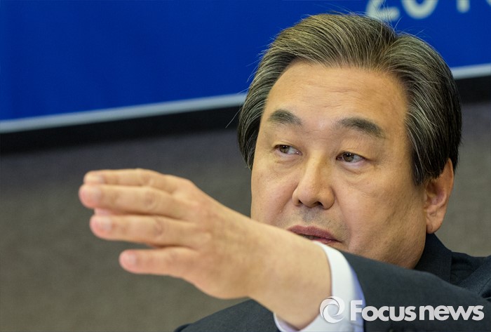 (서울=포커스뉴스) 30일 오후 서울 중구 프레스센터에서 열린 관훈클럽 초청 관훈토론회에 참석한 김무성 새누리당 대표가 좌석 조정을 요구하고 있다.