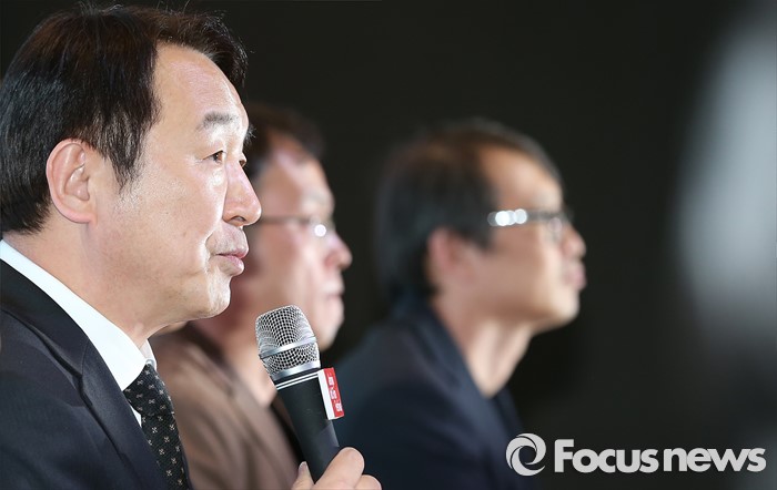 (서울=포커스뉴스) 30일 오후 서울 영등포구 글래드호텔에서 열린 '제17회 전주국제영화제 상영작 발표 기자회견' 에 참석한 이충직(오른쪽) 집행위원장이 관련 설명을 하고 있다.