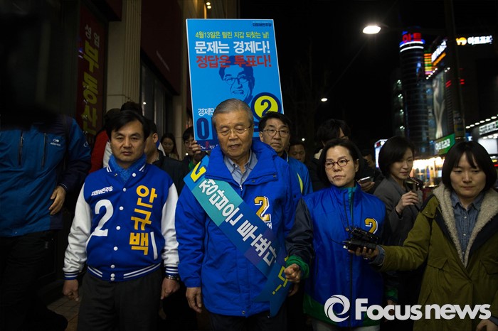 | △ 동대문 일대에서 4.13 총선 첫 유세 시작한 김종인 |